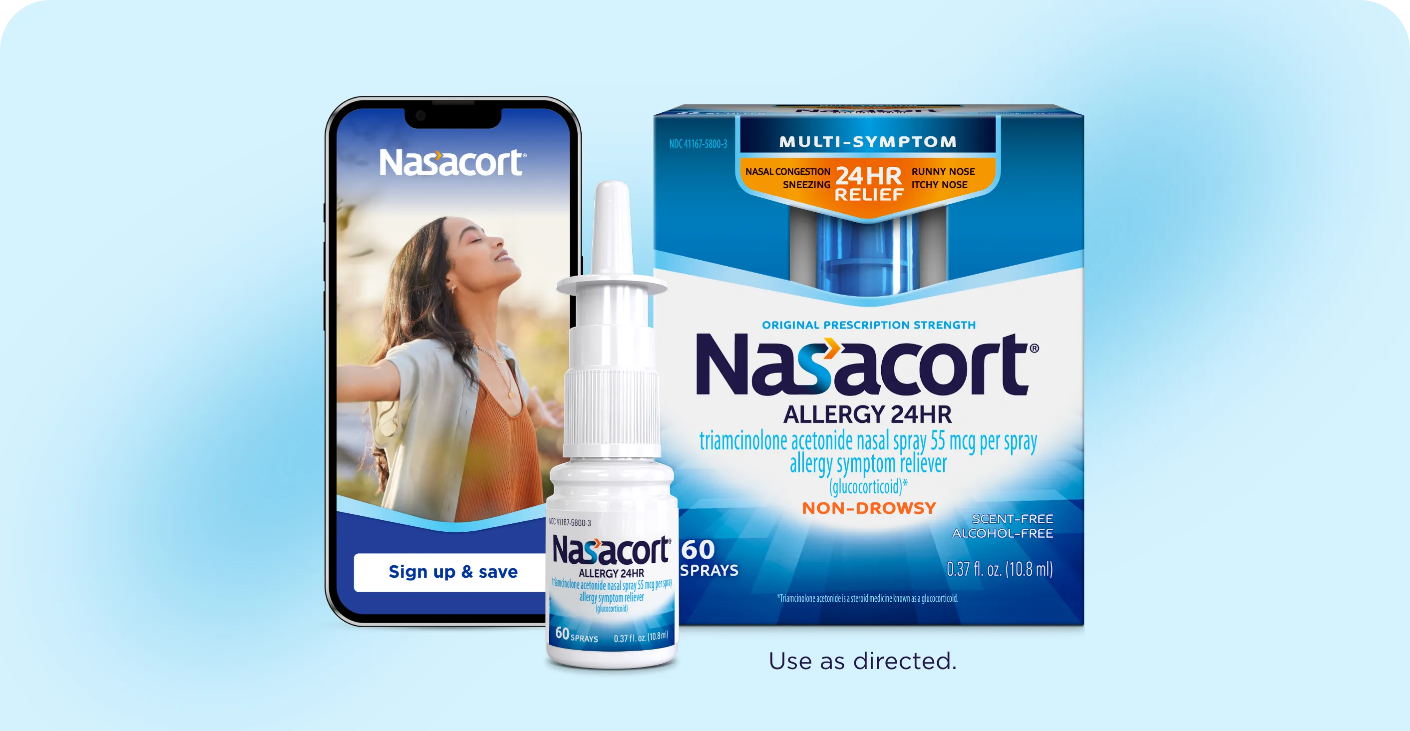 Breathing is believing with Nasacort® nasal allergy spray — it reduces inflammation to relieve nasal allergy congestion, sneezing, runny nose, and itchy nose.